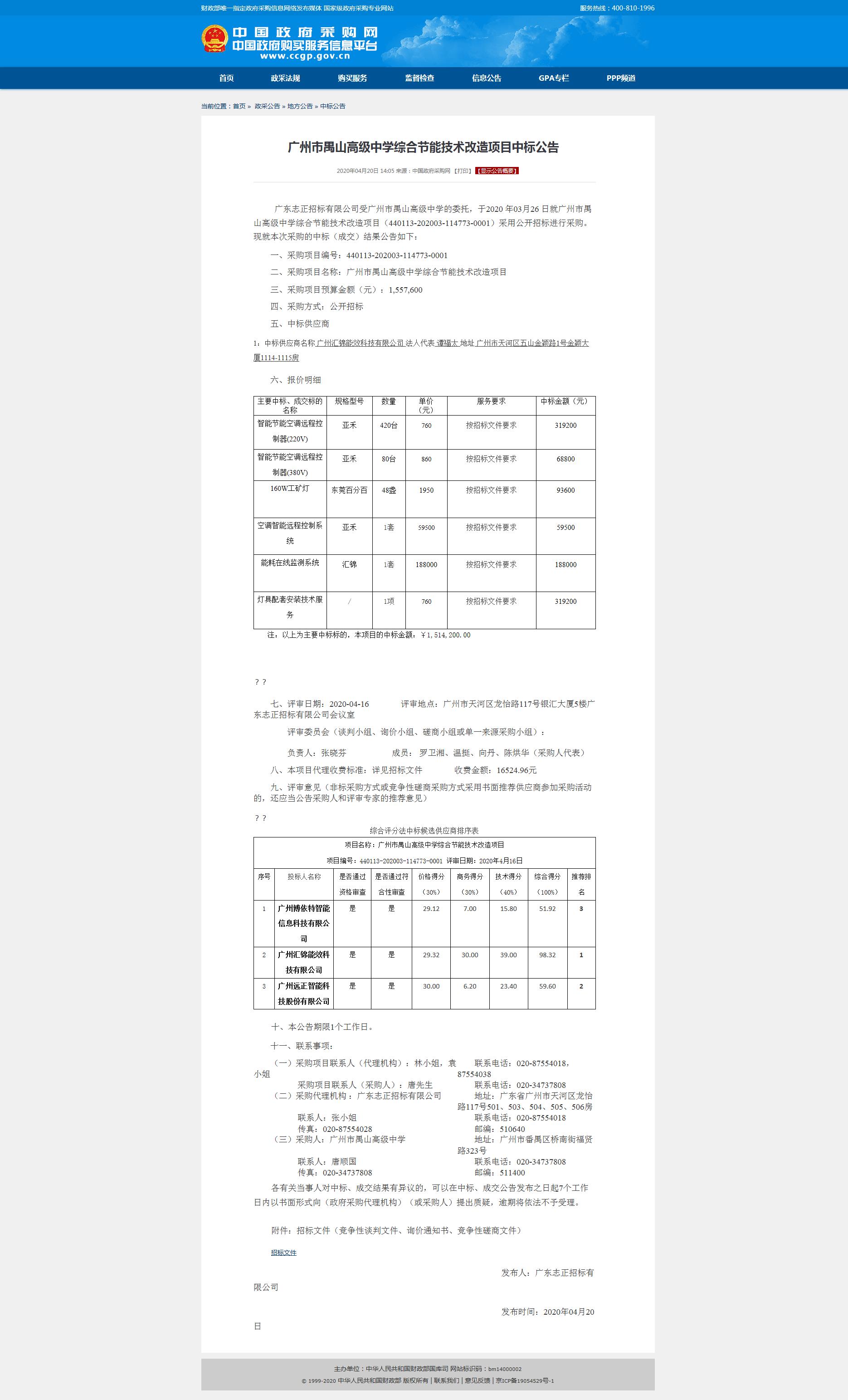 熱烈慶祝廣州派谷中標(biāo)禺山中學(xué)綜合節(jié)能改造項(xiàng)目 廣 東志正招標(biāo)有限公司 受廣州市禺山高級(jí)中學(xué) 的委托,于 2020 年 03 月 26 日就廣州市禺山高級(jí)中學(xué)綜合節(jié)能技術(shù)改造項(xiàng)目 經(jīng)評(píng)審廣州